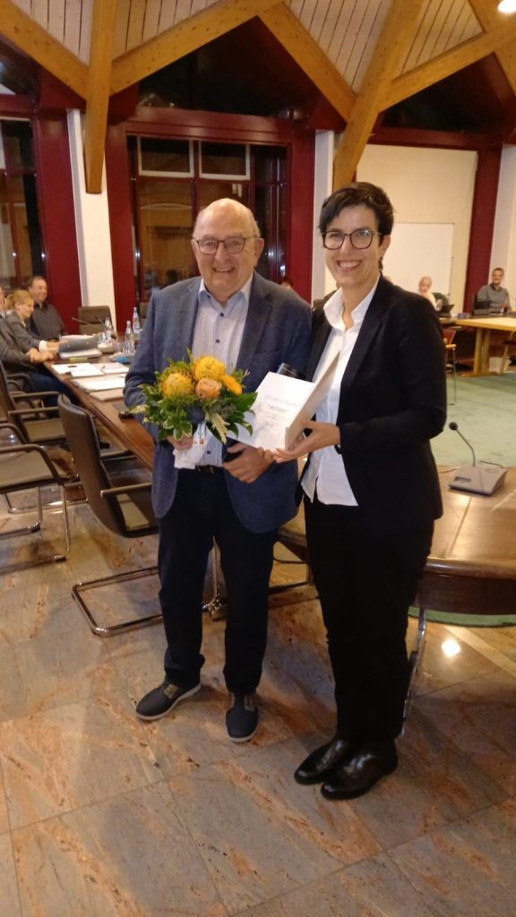Günter Hau (Ortsvorsteher Metzingen-Neuhausen) erhielt bei der letzten Gemeinderatssitzung am 16.11.2023 von Oberbürgermeisterin Carmen Haberstroh die Ehrennadel des Gemeindetags überreicht. Diese Auszeichnung zeichnet vor allem die Hingabe von Günter Hau aus. Immer im Dienst der Sache und den Menschen. Pragmatisch und verlässlich als Ortsvorsteher, humoristisch und liebenswert als Mensch, lenkt er seit vielen Jahren die Geschicke in Neuhausen.