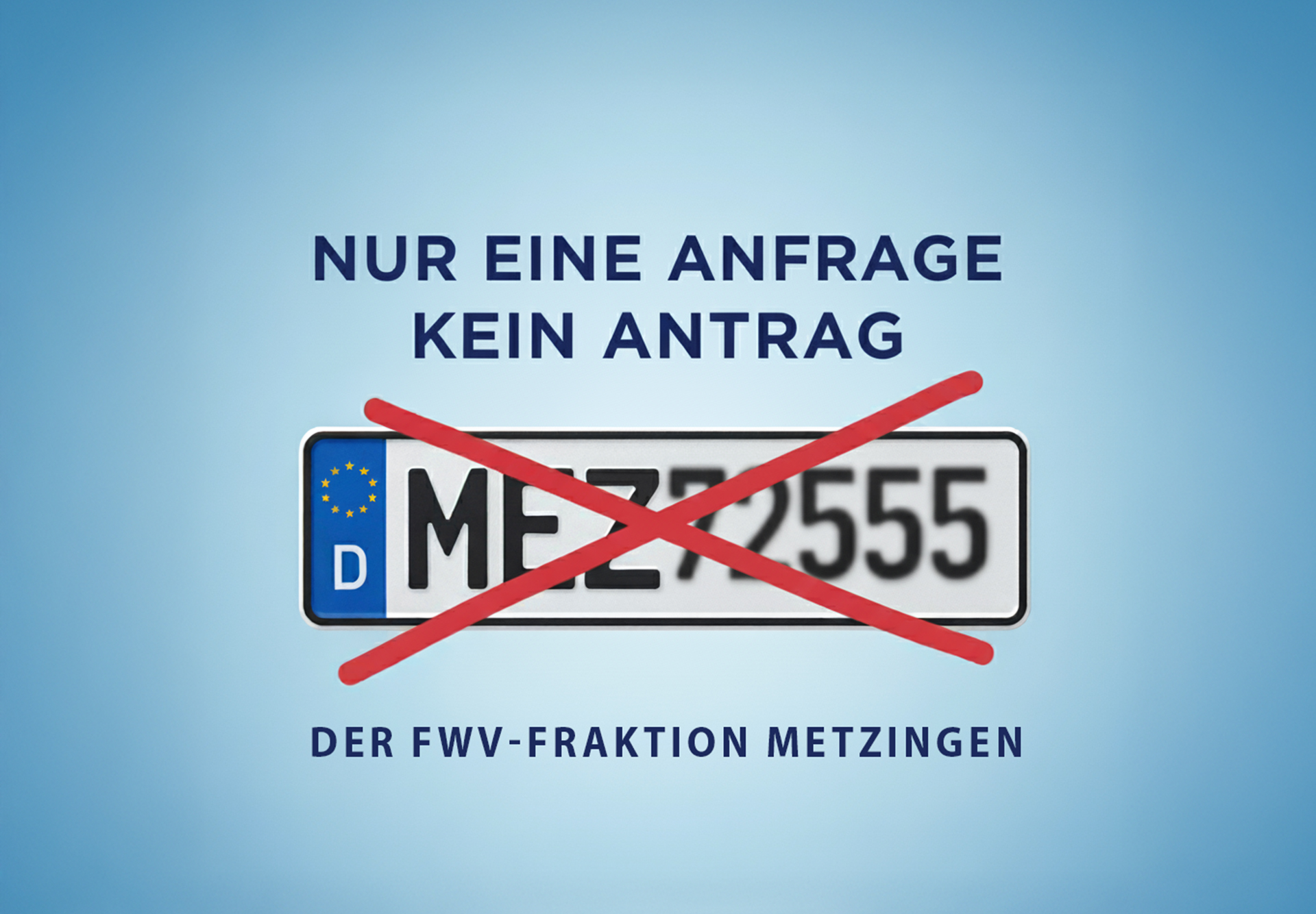 Stefan Köhler, Fraktionsvorsitzender der FWV im Metzinger Gemeinderat sagt ganz klar: „Die FWV stellt keinen Antrag zum Thema „eigenes Kennzeichen“.“ und so Köhler weiter: „Nicht wegen der Aufregung, sondern weil die klare Rückmeldung der Oberbürgermeisterin und Verwaltung eindeutig war: Ein solcher Antrag hätte derzeit keine Aussicht auf Erfolg.“